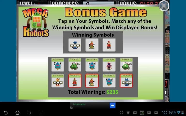 इस स्लॉट मशीन यथार्थवादी कताई रीलों और कैसीनो ध्वनियों के साथ एक "रोबोट" थीम्ड स्लॉट मशीन का अनुकरण है.