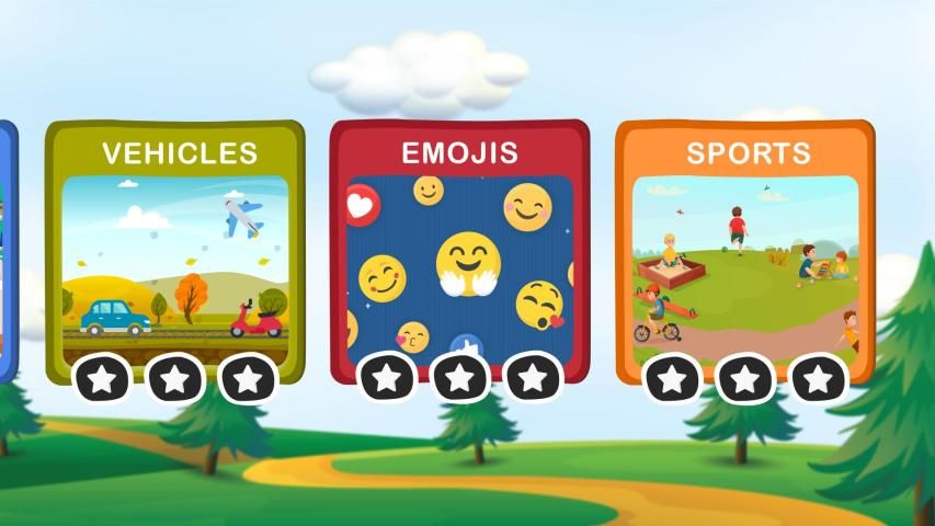 - Colorful images of Animals, cars, Vegetables, Clothes Emojis, and more. Some to be easily remembered and some hard to remember.