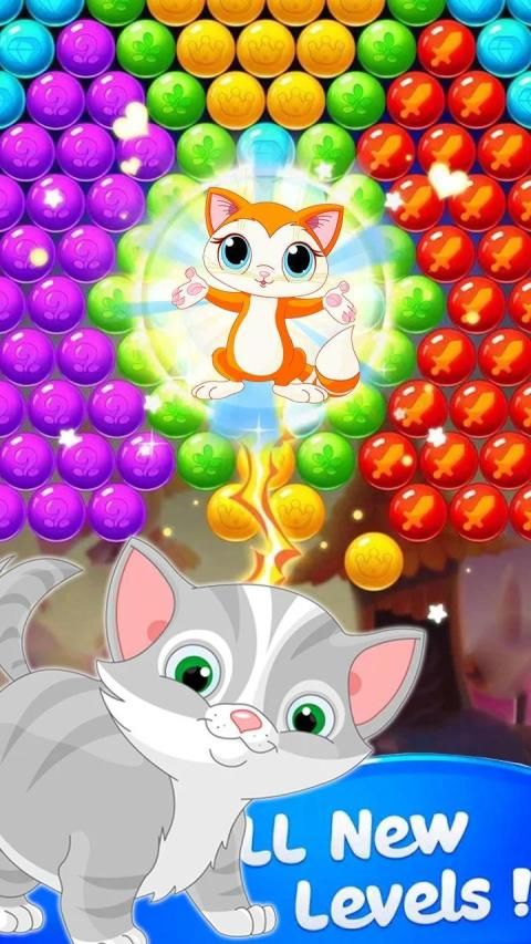 - Shoot cute cats in bubbles containing gold coins that you will get a lot of accumulated and buy items in the game.