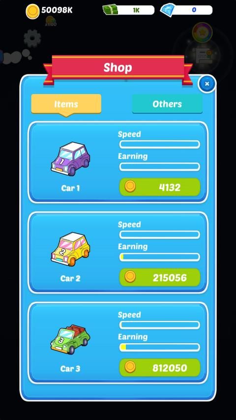 Fill your parking space and get the cars racing. By buying and consolidating your car, you can earn more gold and get more premium cars