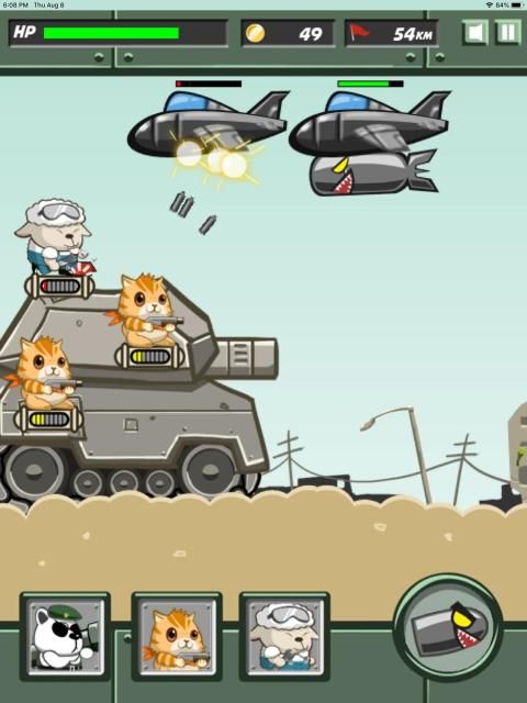 Metal Animals to the rescue! Control a team of cute and furry animals with weapons, and defend the tank from the enemy invasion. Stop the evil animals from destroying your tank! Features: - Innovative drag and drop mechanic: Drag and place metal animals onto strategic positions on your tank. - Unlimited waves of enemies - Different animals to control: foxes, cats, pandas, sheep - they all come with guns.