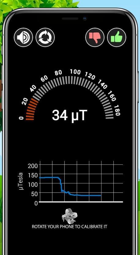 यह मेटल डिटेक्टर चुंबकीय क्षेत्र को मापने के लिए आपके डिवाइस के चुंबकीय सेंसर का उपयोग करता है। यदि एप्लिकेशन क्षेत्र में एक धातु का पता लगाता है तो प्रदर्शित मूल्य बढ़ता है और आपको एक बीप सुनाई देगी। ऐप फेरोमैग्नेटिक मेटल्स का पता लगा सकता है लेकिन नॉन-फेरोमैग्नेटिक मेटल्स का नहीं।