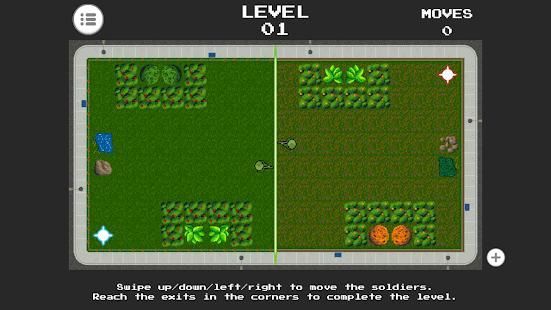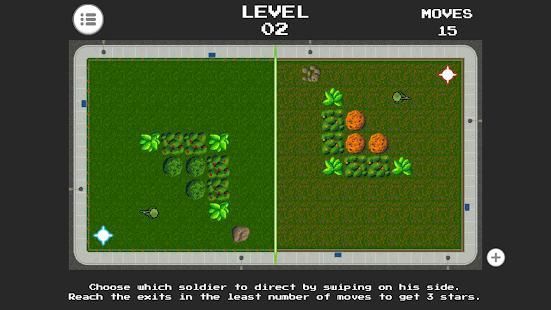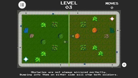 Two soldiers find themselves stuck in a strange mirrored world, where their actions are linked to each other, and obstacles aren't always where they seem.