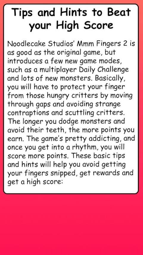 पांचवें क्रम में, इस आवेदन आप किसी भी mmm उंगलियों 2 हैक संस्करण का उपयोग बिना सर्वश्रेष्ठ स्कोर और leaderbord में किया जा रहा संख्या 1 दिखाने के कुछ अंदरूनी सूत्र तथ्य देता है।