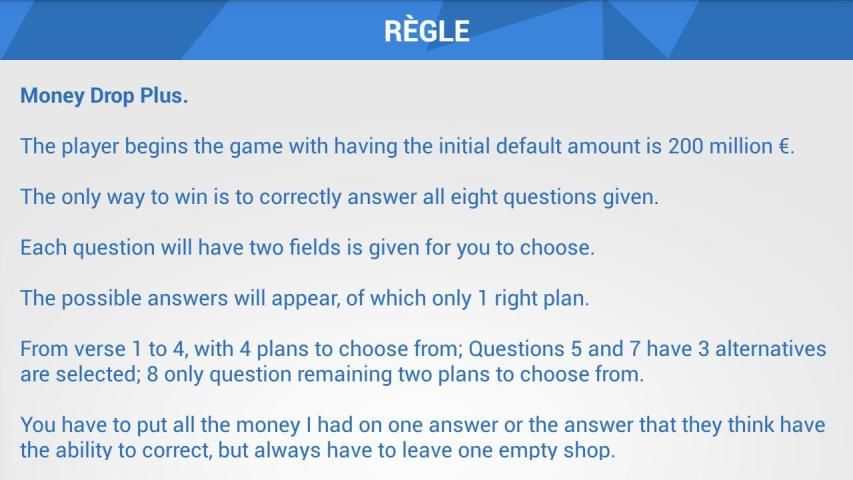 "पैसा ड्रॉप प्लस" खेल शैक्षिक और अत्यधिक बौद्धिक है। आप एक बहुत अधिक ज्ञान की खेती में मदद करें।