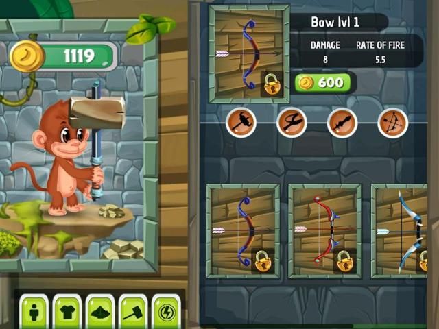 - चार प्रकार के हथियार आप चुन सकते हैं: हथौड़ा, slingshot, तलवार, धनुष
