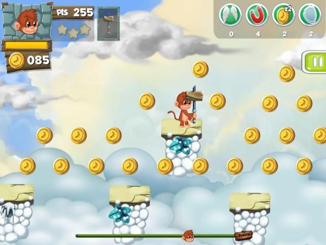बंदर का साहसिक द्वीप पांच अलग-अलग द्वीपों के साथ एक आसान साहसिक गेम है, प्रत्येक द्वीप में 8 नियमित स्तर और दो बोनस स्तर हैं।