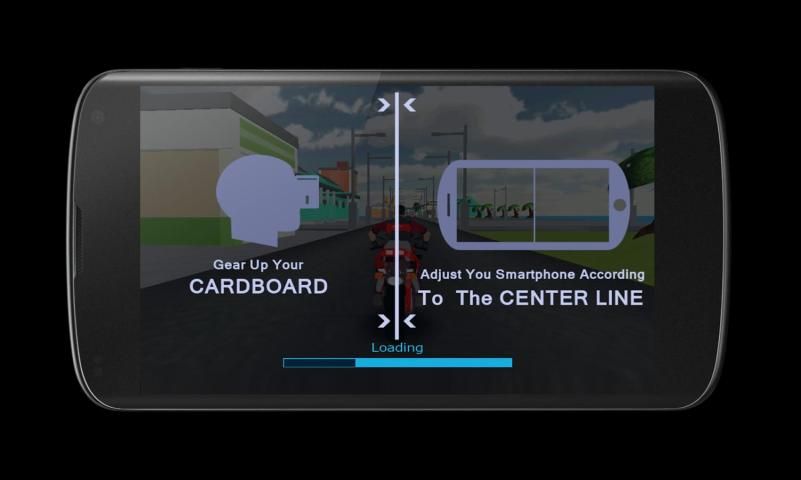 Enjoy the bike racing in Virtual Reality using Google Cardboard glasses.