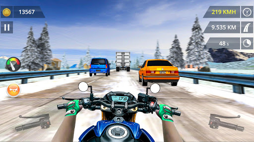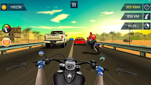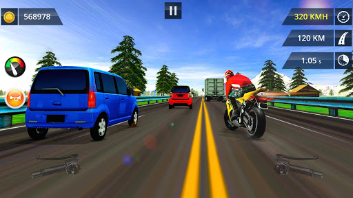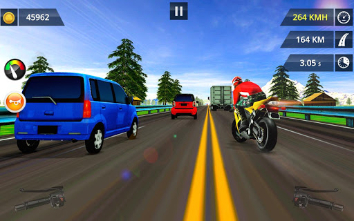 इन सभी सुविधाओं का चयन करने के बाद आप खेल को खेलने के लिए शुरू करेंगे। आप पास के गुजरने वाले वाहनों जैसे आपके रास्ते में विभिन्न प्रकार के बाधाओं का सामना करेंगे। और आप इतनी प्रभावी ढंग से और तेजी से ड्राइव करने के लिए कि आपको शानदार स्कोर से सम्मानित किया जाएगा जो आपका इनाम है। आप स्पीडोमीटर द्वारा बाइक की गति का अनुमान लगा सकते हैं कि हम आपकी डिवाइस स्क्रीन पर उपलब्ध हैं। ऐसे आइकन भी हैं जो समय और ट्रैक शो के बारे में दिखाएंगे। आप अपने फोन को शीर्षक करके अपनी बाइक की दिशा बदलते हैं। और पहले स्तर को पूरा करने के बाद, आप अन्य स्तरों को अनलॉक करेंगे और आगे बढ़ेंगे। इस तरह आप इस खेल को आगे बढ़ेंगे। और वास्तव में इस खेल का आनंद लेंगे।