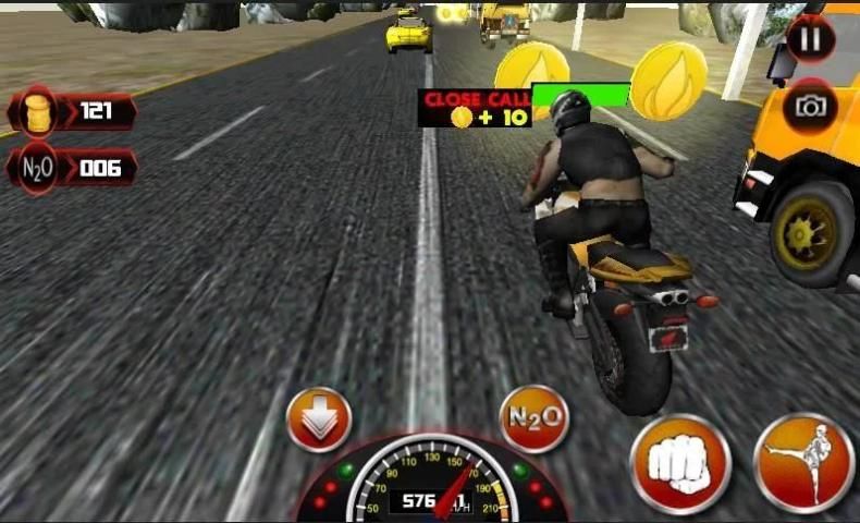 हेलमेट, सुरक्षा संरक्षक खत्म tug पर पट्टा और रोमांचक दौड़ के लिए तैयार हो। नहीं के रूप में आप विरोधी मोटरसाइकिल सवार से अव्यावहारिक हमलों का सामना करना पड़ेगा, इस दौड़ अनुमान के तहत करो। उन नौसिखिया चालक के अलावा, कभी नहीं धीमा, टुकड़े करने के लिए बिखर किया जाएगा।
