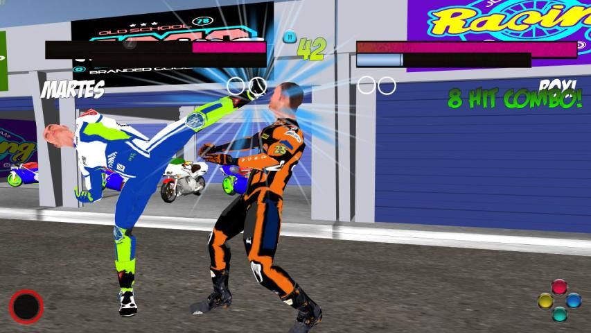 एक लड़ाई में शामिल दो मोटरसाइकिल सवार, कई combos के लिए अपने दुश्मन, महत्वपूर्ण लहरें, मार्शल आर्ट, कराटे, किक बॉक्सिंग, चाल के हजारों और किक के संयोजन, पंच, हवाई हमलों, कई किक, इन्फिनिटी पंच, घूंसे को हराने के लिए वायु और नॉकआउट की खोज करने के लिए बहुत ज्यादा है।
