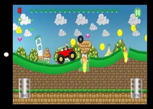 The Haunted Wheel from hell jump to crash your car So the player hs to drive over the hills and avoid the wheel at the same time.