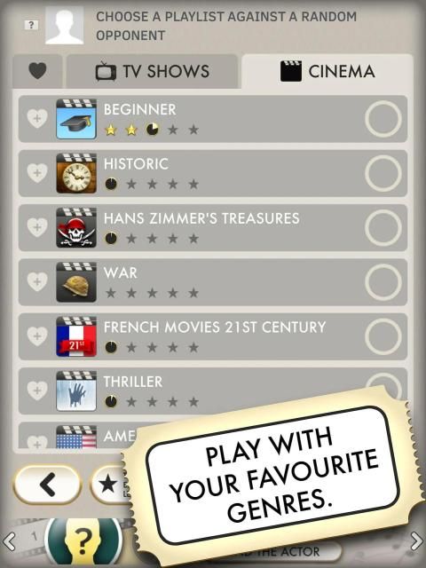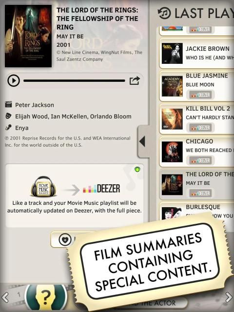 A game enabling you toexperience all the emotions of cinema via thousands of soundtrack and song clips.