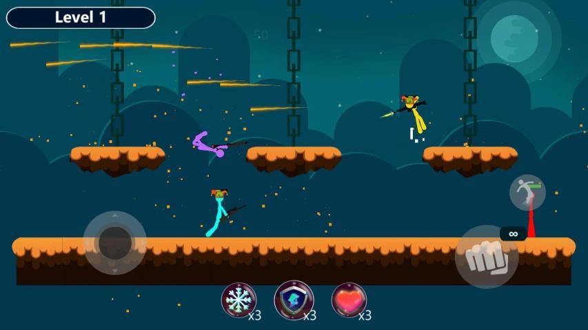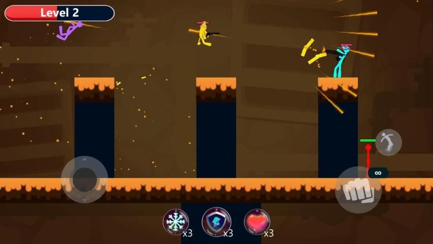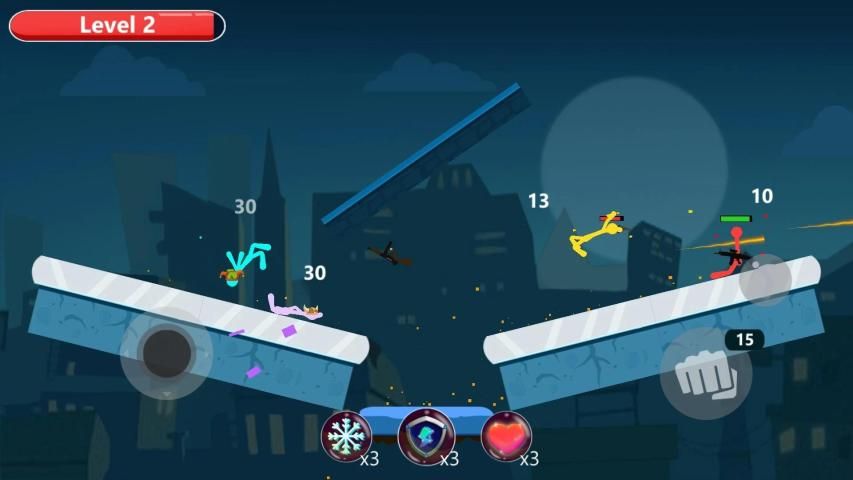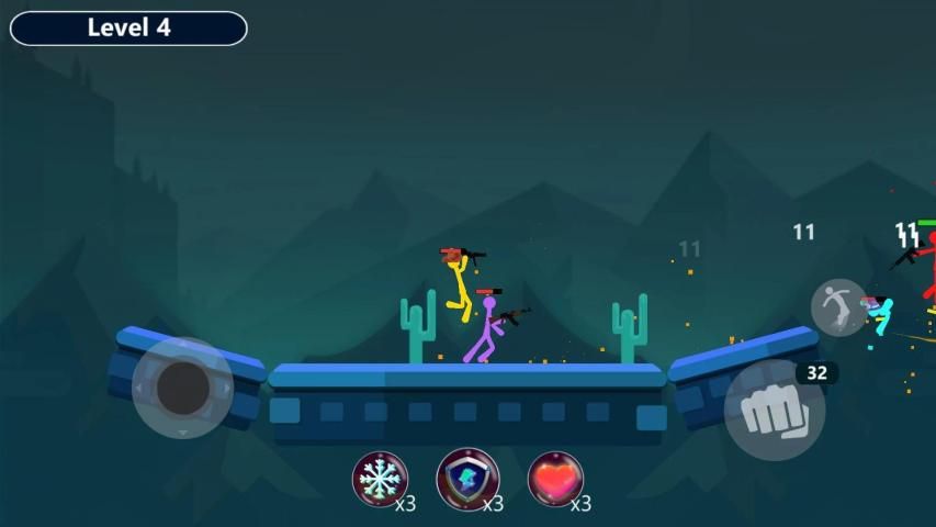 चलाने, कूदने और लड़ने के लिए स्टिक आकृति को नियंत्रित करें।