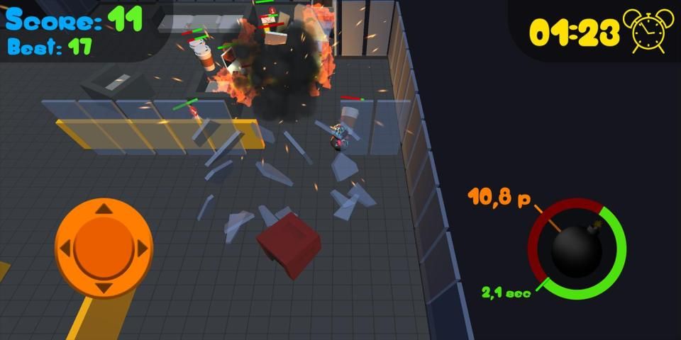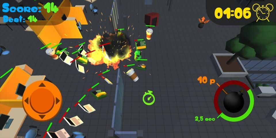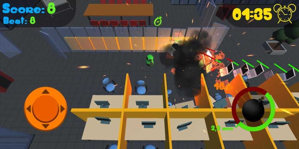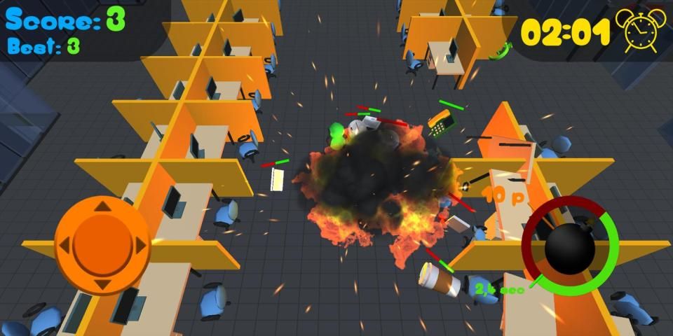 - Empower your bomb by collecting booster inside the office.