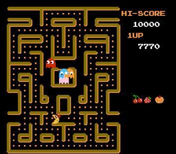 The player earns points by eating pellets and avoiding ghosts (contact with one causes Ms. Pac-Man to lose a life). Eating an energizer (or "power pellet") causes the ghosts to turn blue, allowing them to be eaten for extra points. Bonus fruits can be eaten for increasing point values, twice per round. As the rounds increase, the speed increases, and energizers generally lessen the duration of the ghosts' vulnerability, eventually stopping altogether.