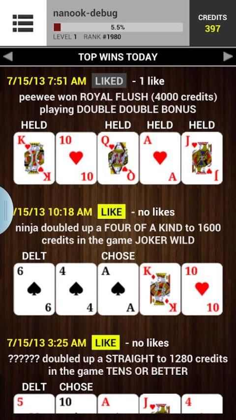 See live stats of - top 100 players, top 100 players of the day, your rank, top royal flush winners, latest wins and top wins of the day.