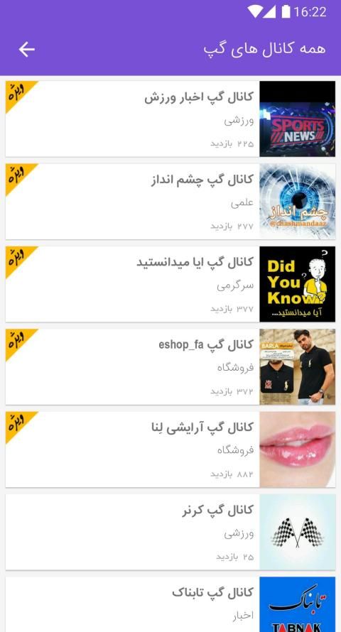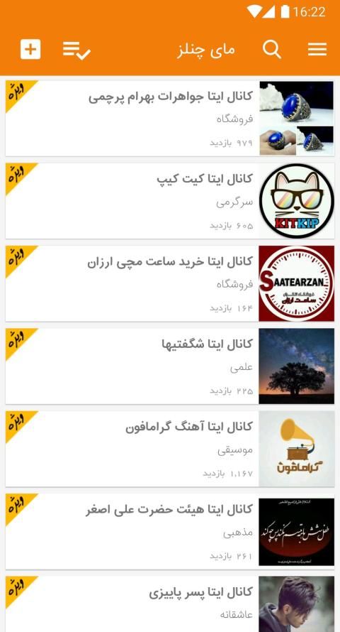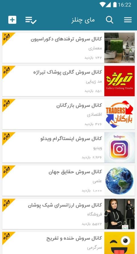کانال سروش ، کانال ایتا ، کانال گپ و کانال آی گپ مورد علاقه خود را در مای چنلز بیابید.