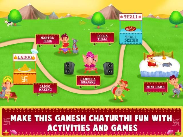Help Ganesha in catching his favourite modaks and laddoos. Learn to make Churma laddu - specially served in the form of prasad. Play a devotional and fun mini game where different types of Laddus are falling from the sky and you have to catch it in Lord Ganesh's palm.