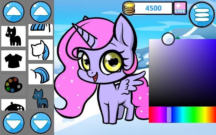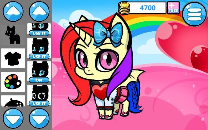 प्ले और आप अपने टट्टू के लिए किसी भी केश, पूंछ या रंग चुन सकते हैं। और यह भी उसकी पोशाक और पृष्ठभूमि का चयन करें।