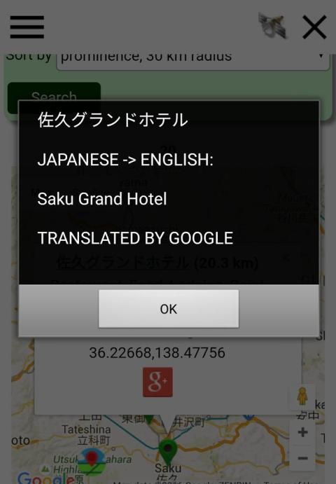 • पास के प्रकार, नाम, दूरी या त्रिज्या से गूगल स्थानों का पता लगाएं। खोज परिणाम अनुवाद गूगल द्वारा संचालित कर रहे हैं।