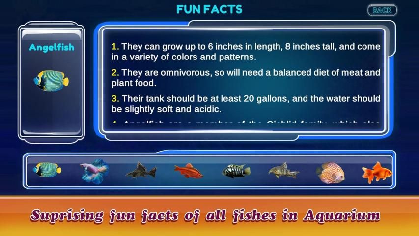 • Change the background of your Fishtank, choose among different plants, accessories, etc.