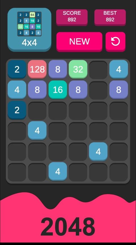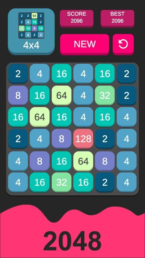 The best version of the game we all know. Reach the highest score among all your friendes and show them who is in charge. You can select different game modes from 4X4 to 6X6.