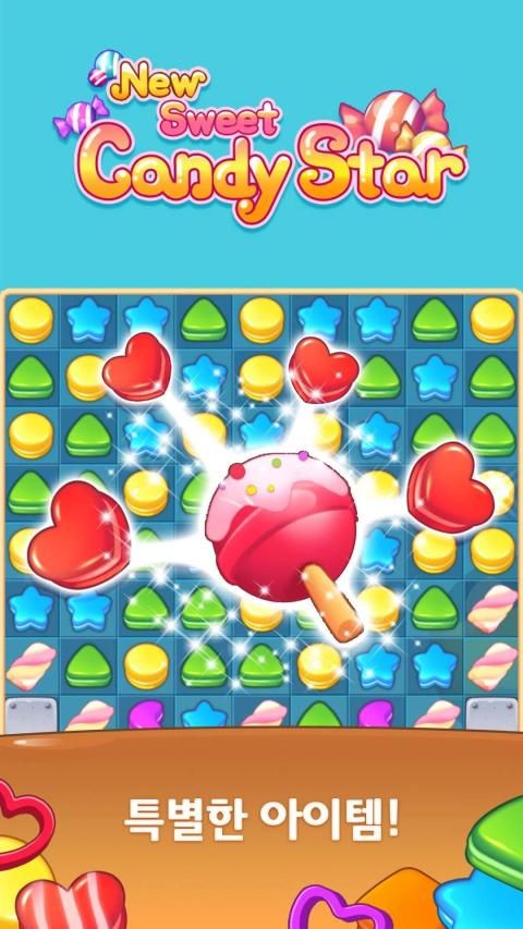 같은 모양 캔디를 4개 이상 배치하면 스페셜 캔디가 생겨서 더 많은 캔디를 부술 수 있어요.