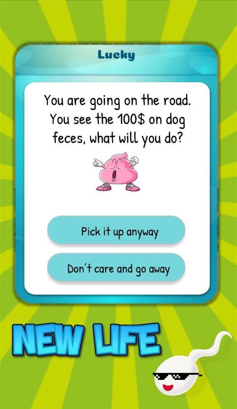 New life game is a text choices simulation gaming app rating for users 15 years and older. You start off Newlife in a random character at birth with a pair of parents tasked with raising you and then allows you to make text-based choices that will impact how the life of your character you are playing turns out from birth until death.