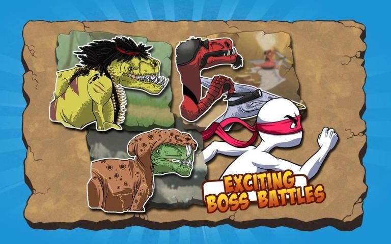 Ninja Joe must travel to the age of dinosaurs to find the mystical gems that will save his master's life. He must run for his life and get the gems from the evil velociraptors. Run through the jungle, desert and glacier in 25 exciting levels, avoid the dinosaurs and beat the evil velociraptor bosses!