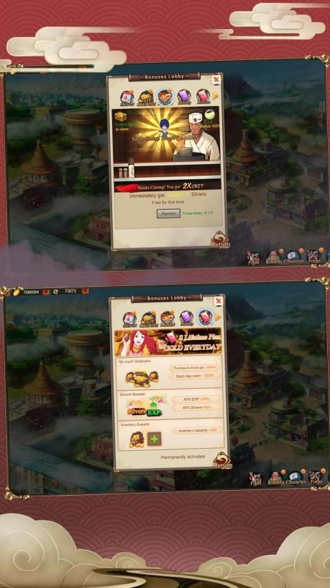 You can claim abundant rewards in Benefits Lobby, you can also fight the bosses, join cross-server events, challenge in Arena, join the Guild to fight together.