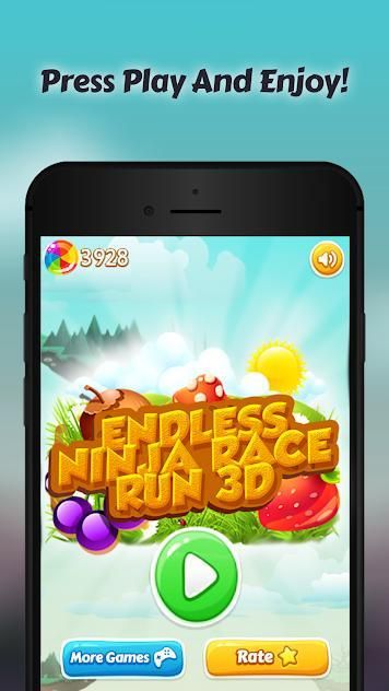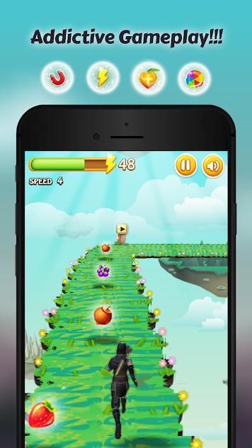 Collect the fruits scattered on both sides of the road while you running to increase Ninja Run Race 3D speed,