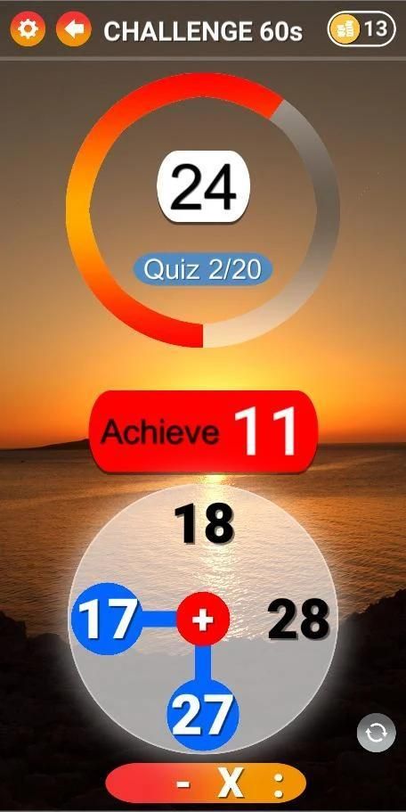 Achieve the result by connecting numbers and operators. In more complex levels you will choose the operator to obtain the required number.