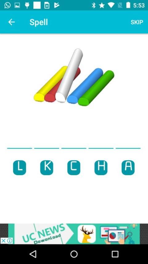 2.Spell -> वर्तनी के साथ वस्तुओं की वर्तनी जानें। फ़्लैश कार्ड आप ऑब्जेक्ट की पहचान उसे सही लिखें में मदद मिलेगी।