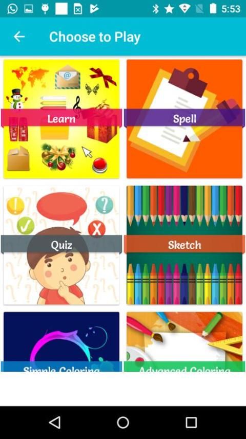 4.Magic स्लेट -> यह एक स्लेट जहां अक्षर, संख्या लेखन और ड्राइंग विभिन्न images.This खंड रंग के बहुत सारे अपनी छवि को रंगीन बनाने के लिए है का आनंद ले सकते हैं।