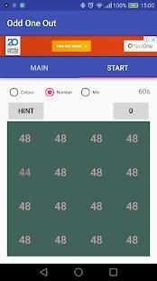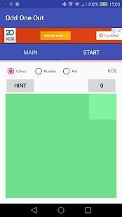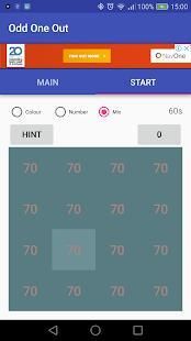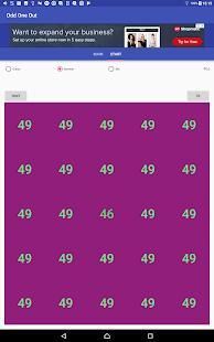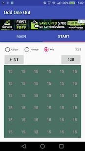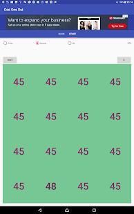 एक साधारण खेल आप जहां अजीब एक बाहर पहचानना। यह रंग, या एक नंबर या दोनों का मिश्रण हो करने के लिए सेट किया जा सकता है।