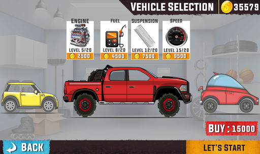 कई अलग-अलग कारों के साथ अद्वितीय पहाड़ी वातावरण की चुनौतियों का सामना करें। साहसी चाल से बोनस प्राप्त करें और अपनी कार को अपग्रेड करने और यहां तक कि उच्च दूरी तक पहुंचने के लिए सिक्कों को इकट्ठा करें। हालांकि देखें -
