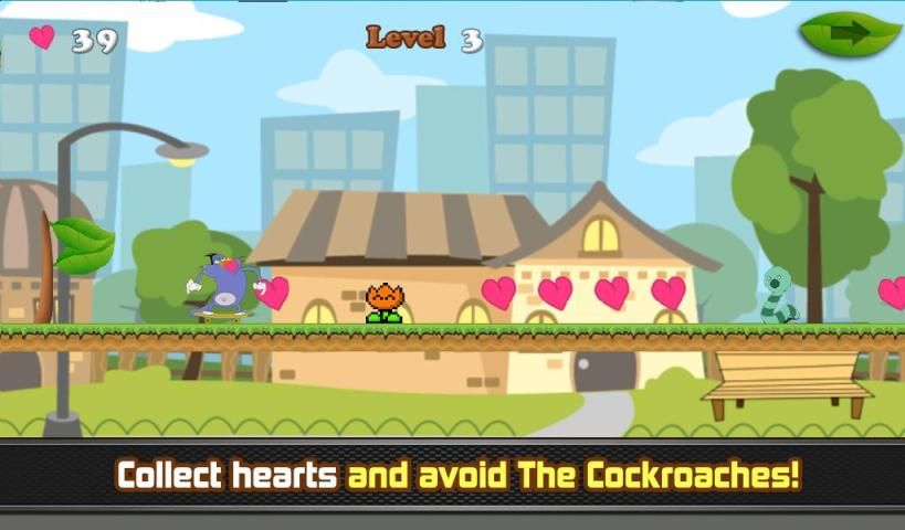 IT'S NOT "oggy and the cockroaches" game : This game is an adventure, created by me with variated levels played in an city that have no relation with oggy and the cockroaches the cartoon or application or game or anything related design, we are not the makers of the cartoon and we don't claim any relation with it.