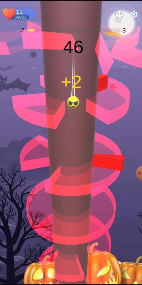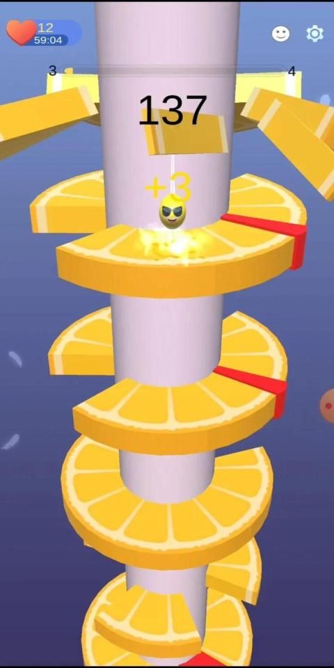Help the emojis escape the helix fruit tower by crushing the fruit platforms