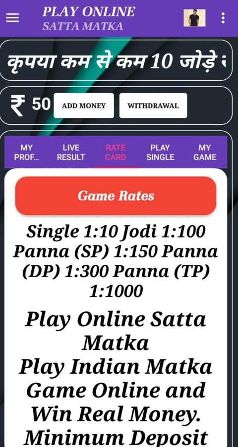 मोबाइल के लिए सबसे अच्छा सट्टा मटका एंड्रॉयड ऐप में आपका स्वागत है। सत्तमाटकई एक ऐसी दुकान है, जहां आप पूरी तरह से मटका खेल सकते हैं और आनंद ले सकते हैं। हमारे एप्लिकेशन डाउनलोड करें और कुछ अद्भुत मटका टिप्स, विचार और अधिक प्राप्त करें। सट्टा मटका खेलने की खुशी का अनुभव करें या बस सट्टा, जो कि सट्टेबाजी का रूप है, ज्यादातर देश के विभिन्न हिस्सों में लोकप्रिय है।