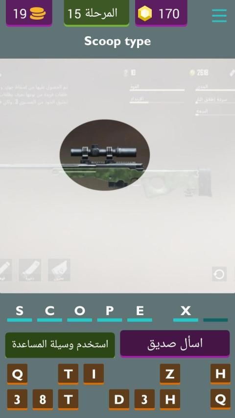 It contains many puzzles such as knowing the type of weapon or type of car or type of scope