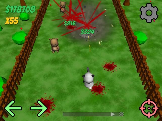 Featuring multiple weapons, a bloody mess, and exploding teddy bears!