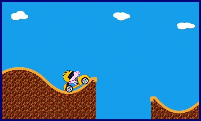 Pepa सुअर दौड़ के साथ ड्राइव, उसे राजमार्ग कूदते बाधाओं पर मदद के लिए, अपने कौशल दिखाने।