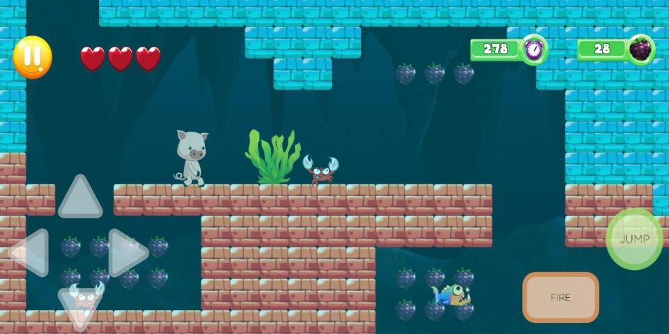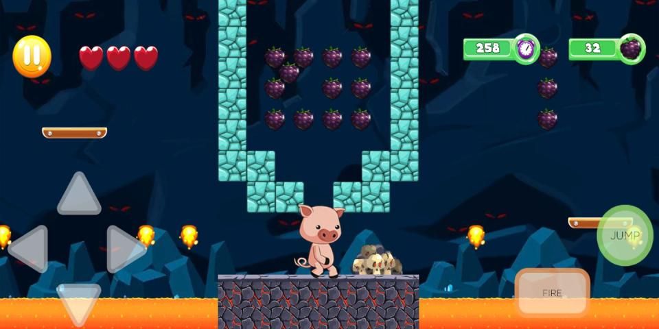 Piggy helped Run to the jungle castle and jumped over the obstacles. Collect grapes and avoid enemies. Live the adventures through 100 levels of pleasure. Come on, let's play!