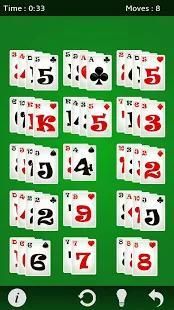 - केवल प्रत्येक ढेर के शीर्ष पर मूल्यों से मेल खाते के साथ कार्ड ले जाया जा सकता