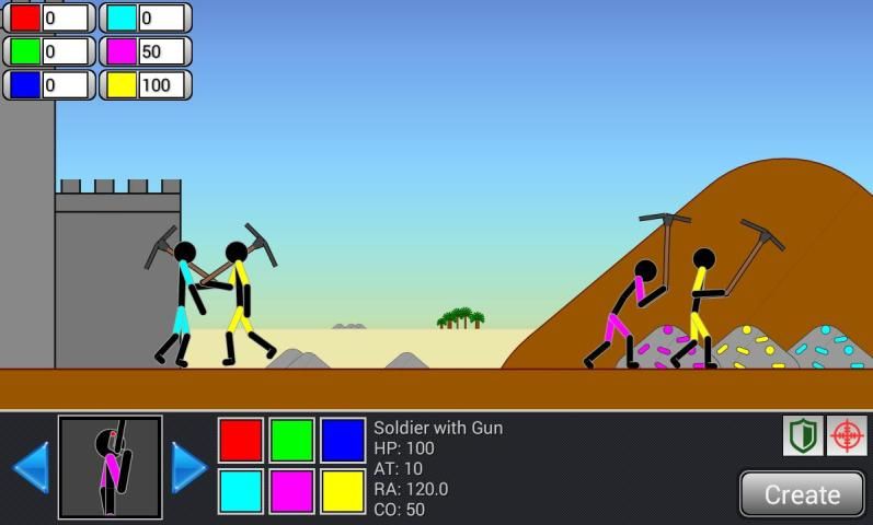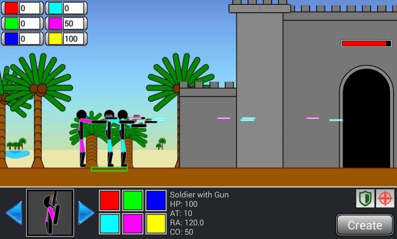 सैनिकों (या धुरी Stickman शैली) बनाने के लिए रंगों के संयोजन, इस शूटर और रणनीति खेल रहे मज़े और वे दुश्मन को हराने के, दुश्मन, अपने आधार को नष्ट करने के लिए वे अपने मिशन को पूरा करने से पहले उन्हें हार let¡ नहीं चाहते.