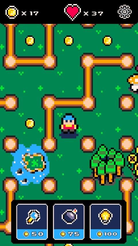 - 3 पावर-अप: बाहर का रास्ता देखने के लिए ज़ूम आउट करें, बम से दीवारों को विस्फोट करें और बाहर निकलने के लिए टिप्स प्राप्त करें;