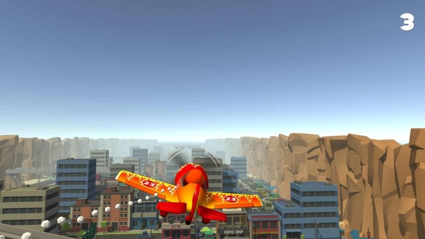 रिंगों के माध्यम से उड़ान भरने का लक्ष्य रखते हुए शहर की इमारतों और देश की चट्टानों के आसपास अपनी उड़ान प्रतिक्रिया का परीक्षण करें।