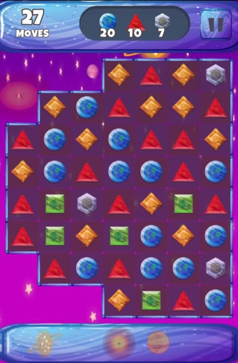 Your mission is move, swap, match 3 planet-jewel and collect all item that is on target in limit moves throung more 200 levels.