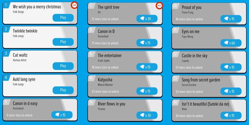 Over 1000 unique Piano songs. Play your favourite piano chart and compete with other players